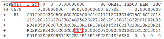 The information of the header file from the precise orbit products on 29 January 2017. The red squares mark the corresponding date and highlight the precise orbit of C04 has been determined.