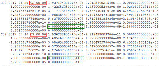 The information of the header file from the precise orbit products provided by iGMAS contained the C02 satellite in Figure 13. It is proven that there is no orbit maneuvering for the C02 satellite.