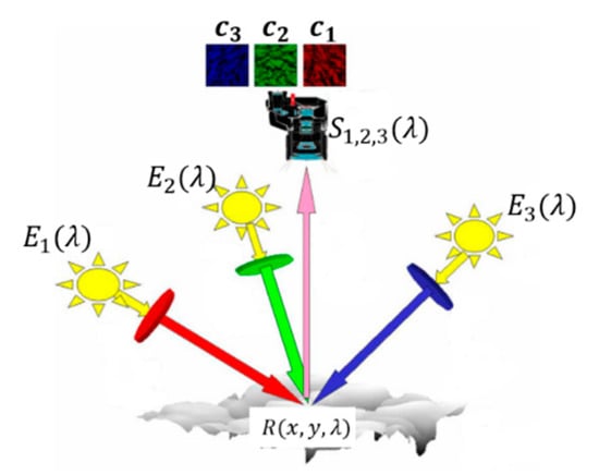The principle of multi-spectral photometric stereo is shown in Equation (1).