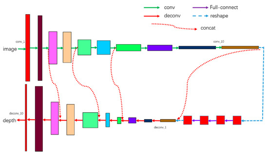 The architecture of the proposed network is shown in Figure 2. The network contains twenty-four layers, including ten convolution layers, four fully-connection layers, and ten deconvolution layers. We do not use any pooling strategy in our network. The details of our network are expounded in Table 1.