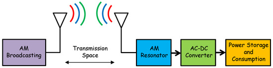 The conceptual diagram of an AM RF-energy harvester is shown in Figure 1. Basically, electromagnetic-wave power irradiated by way of AM commercial station is detected by the AM harvester system, and then it is applied to switch on low energy utilization devices.