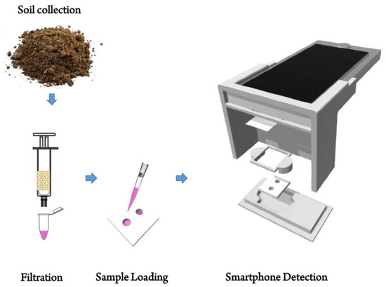 Apart from the drawbacks of the above-mentioned methods, portability is another critical factor for on-site detection. The portability of analytical system should be emphasized on resource-limited settings where power supply, skilled operators, and laboratory setup are lacking. Currently, the omnipresent smartphones are the most suitable means for providing the portability. Combined with data processing, analysis, and geometric data communication abilities, smartphones can be an ideal platform for the contamination monitoring of the soils in large areas. Certain reports involving colorimetric detection of analytes with data processing and sharing facility are available [52,53,54,55]. Nevertheless, there is absentia of mobile platforms for arsenic detection in the soil and the automation of analytical procedures.