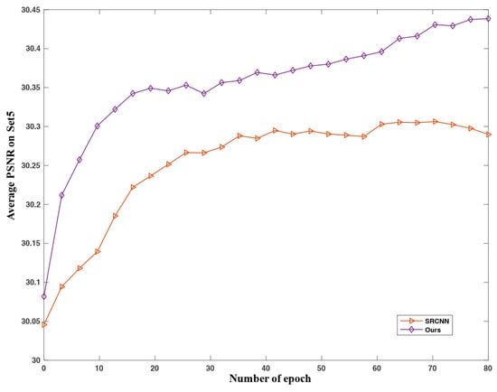 For fair comparisons, we applied residual learning to the original SRCNN. In the following, all the SRCNN means the residual learning SRCNN. The same training sets, learning rates and initial parameters are used in SRCNN and our proposed model, and all networks are evaluated on Set5 with an upscaling factor of 4.