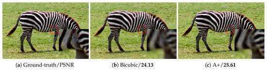 However, the image super-resolution problem is an inherently ill-posed problem because many HR images can be down-sampled to the same LR image. Such a problem is typically mitigated by constraining the solution space by strong prior information, which assumes that the neighborhood of a pixel provides reasonable information to restore high-frequency details that lost by down-sampling. For a detailed review of these methods see []. In general, the current approaches for super-resolution can be categorized into three classes: interpolation-, reconstruction-, and learning-based methods [,,,,,,]. Recently, learning-based methods [,,] achieved state-of-the-art performance. The above methods typically work at the level of small fixed-size image patches.
