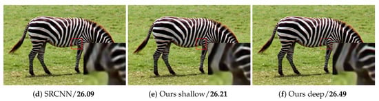 - Kim, J.; Lee, J.K.; Lee, K.M. Accurate image super-resolution using very deep convolutional networks. In Proceedings of the IEEE Conference on Computer Vision and Pattern Recognition, Las Vegas, VA, USA, 27–30 June 2016; pp. 1646–1654. [Google Scholar]