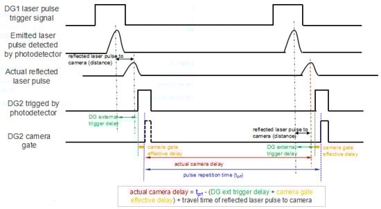 Synchronization control between the pulsed laser and camera is particularly important in the proposed gated wavefront sensing system. Laser pulses are controlled in conjunction with the shutter speed of the camera to capture the returning pulse from the target, which contains the information required for wavefront reconstruction. Figure 2 illustrates the working principle of the synchronization control.