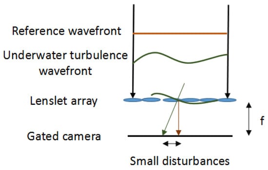 Nowadays, wavefront sensing has been applied to multiple applications, such as: applied optics [13,14], ophthalmology [15,16], and optical detection [17,18]. The Shack–Hartmann wavefront sensor (SHWS) is a critical optical instrument in wavefront sensing [19,20,21]. It provides a method of estimating the incident wavefront upon a larger aperture by dividing the larger aperture into a number of smaller subapertures. With the development of wavefront sensing, it has also been applied to the field of underwater turbulence detection. Restaino et al. [22] proposed a method to detect underwater turbulence using the wavefront sensing technique and adaptive optics [23,24,25]. In their study, they used heating and cooling plates that can create a well-controlled thermal gradient that in turn generates different degrees of turbulence. Due to the influence of the water refractive index, they use a deformable mirror (DM) to correct the effects of turbulence and improve the performance of the optical system. The control signal generated by the wavefront processor controls the movement of the DM to compensate for the wavefront distortion [26]. Since the corrections are performed in real time, the control system has very high requirements, and thus does not have applicability [27]. Goncharovm et al. [28] proposed a method to correct the atmospheric turbulence using a linear atmospheric dispersion corrector (ADC) coupled with a deformable mirror and wavefront sensor on a large telescope. Wu et al. [29] designed a plenoptic sensor to retrieve the phase and amplitude changes resulting from a laser beam’s propagation through atmospheric turbulence. The reconstructed phase is obtained by multiple wavefront extraction techniques at various depths in a channel.