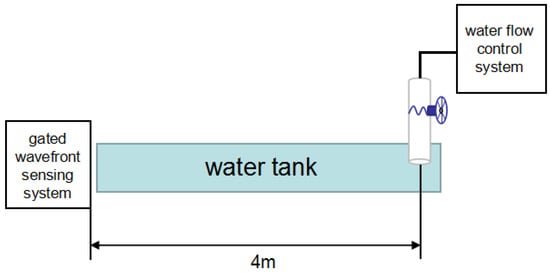 In this study, we combine wavefront sensing and the time-of-flight (TOF) range-gated principle to detect underwater turbulence. The gated wavefront sensing technique provides a simple structure, high detection efficiency, and strong anti-interference ability [44,45,46]. The timeliness deficiency of wavefront sensing could be remedied by introducing the time-of-flight technique. Our setup simulates the underwater turbulence using different flow rates of water. We can elaborate the characteristics and principle of the range-gated imaging, which operates based on the TOF principle in later sections. By using the proposed gated wavefront sensing system, the turbulence effect on the underwater detection is analyzed, and the experimental results are discussed in this paper.