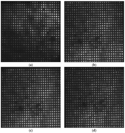 The centroid locations of the focal points are then compared with the reference focal points. The displacement of each centroid location reflects the wavefront slope. The wavefront information obtained at a water velocity of 0 L/min is used as the reference wavefront. The schematic diagram of the wavefront sensor is shown in Figure 4.