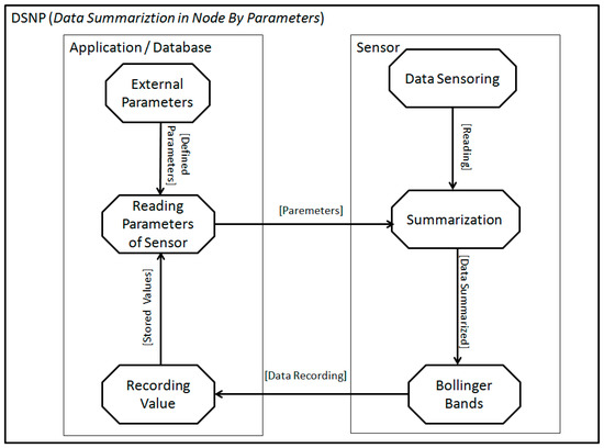 In this section we will discuss the application proposal, Data Summarization in the Node by Parameters (DSNP), the implemented algorithm for the data summarization. We also discuss the process of node summarization, the analysis of the need to record the data or not through the Bollinger bands and the roles of the database in providing the updated parameters, as well as storing data.
