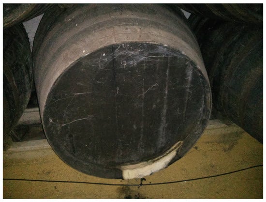 Figure 11b shows that the interior of the instrumented cask was completely dark for the 19 days that the system was gathering information. As we explained, a signal of light indicates that a crack has appeared in the cask and, as a result, a considerable loss of wine, but the system indicates that neither of these two events occurred. After this experiment, according to the “Bodegas San Acacio” winemaker information, two new defective casks were detected, shown in Figure 12:
