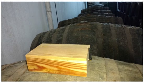 All the components mentioned have been installed in a preliminary wooden case (shown in Figure 5b) that is used as a cork for each of the casks in the winery. The complete system can be powered using two different methods. The first is to connect the board to an electrical plug using a power adapter. The second is to use a chargeable battery. In our tests, we have used a conventional 5 V power adapter and a 2200 mAh 7.4 V Lithium polymer battery.