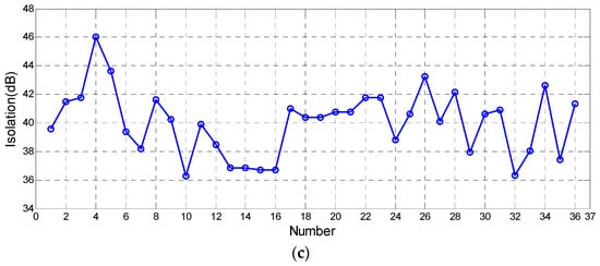 Figure 8a,b reveal that the absolute value of errors keeps less than 1 dB. We can think that the residual CIs don’t affect the isolation estimation, i.e.,