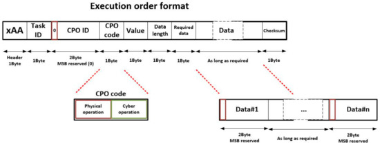 The proposed format for the execution orders may be seen in Figure 5. This message is needed to require the sensor network to execute a CPO or, at least, to evaluate the possibilities of carrying out the execution. The proposed format is byte-aligned. Eight different fields are considered in each execution order. Namely: