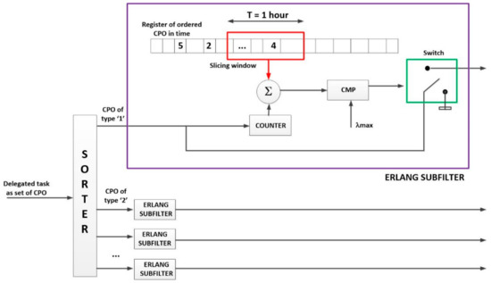 Experimentally, it is proved that the service time follows an exponential probability distribution in telephony systems. Although no similar results have been obtained for WSN, in this work we are assuming the service time in WSN follows an exponential law as well (4). Hereinafter, is the medium service time for the group of servers (i.e., the required time to execute a certain CPO operation by a server within ).