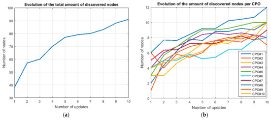 (a) Evolution of the total number of nodes (b) Evolution of the number of nodes per CPO.