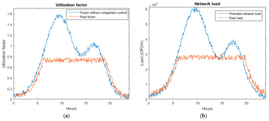 (a) Utilization factor (b) Network load.