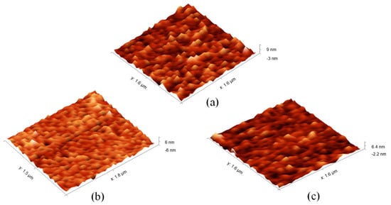Contact mode 3D AFM images of: (a) PoAP–MEL film, (b) PoAP–MEL film removed template MEL and (c) NIP film. RMS are 1.04 nm, 0.87 nm and 0.61 nm respectively.