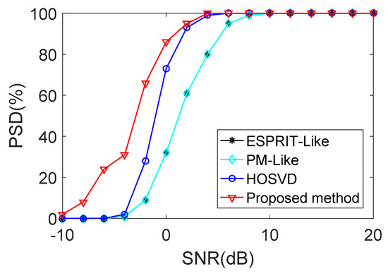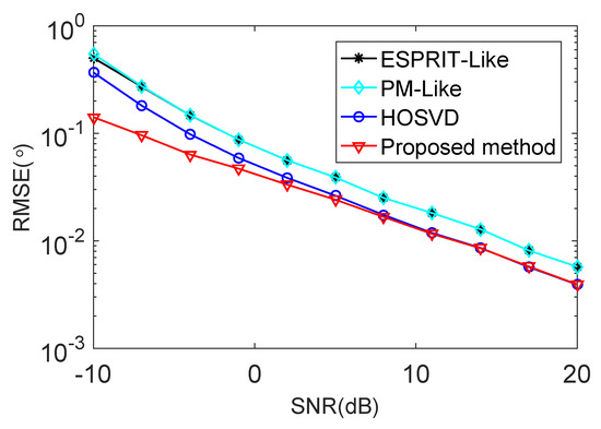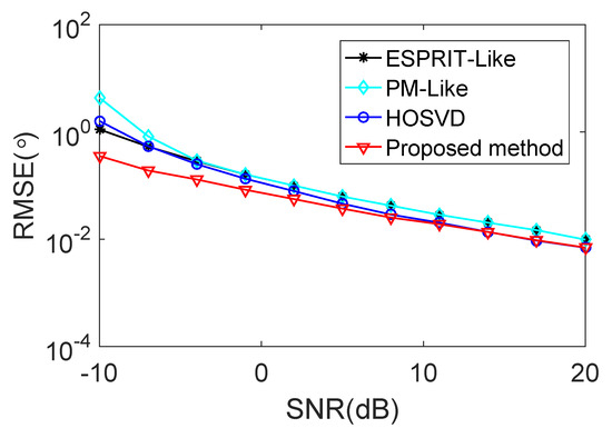 - Zhang, X.; Xu, L.; Xu, L.; Xu, D. Direction of departure (DOD) and direction of arrival (DOA) estimation in MIMO radar with reduced-dimension MUSIC. IEEE Commun. Lett. 2010, 14, 1161–1163. [Google Scholar] [CrossRef]