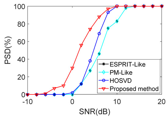 - Xu, B.; Zhao, Y.; Cheng, Z.; Li, H. A novel unitary PARAFAC method for DOD and DOA estimation in bistatic MIMO radar. Signal Process. 2017, 138, 273–279. [Google Scholar] [CrossRef]