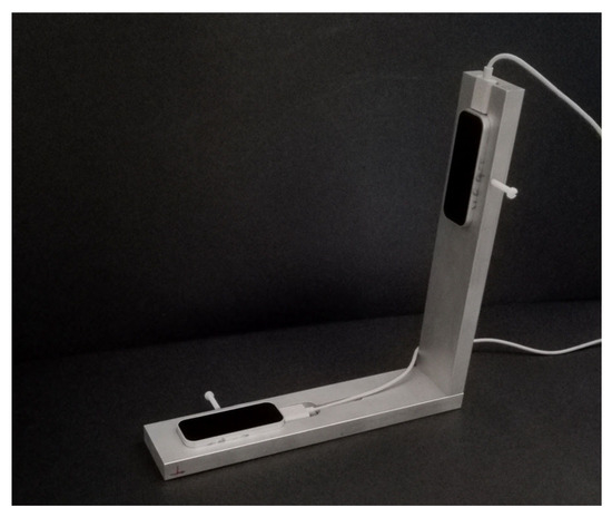 The VG system was designed to obtain simultaneous information from two LEAPs, orthogonally placed each other. The reason is that a single sensor is unable to compute with accuracy hand/fingers locations in the case of occlusions, that is, if the palm is approximately perpendicular to the sensor plane. The usage of two orthogonal sensors should ensure that at least one of them would maintain a favourable view of the hand. The VG support was realized in aluminium and lodges for the sensors, of the same shape of a LEAP cover base, were realized by using a numerical control mill (GUALDONI Mod. FU 80, 1995, Milan (Italy), spatial precision 0.01 mm). The LEAPs were fixed in position inside the lodges through plastic screws to avoid possible vibrations and movements (see Figure 1 for the assembly details). The centre of each LEAP was positioned at 18.5 cm from the internal part of the corner of the support: this was established for maximizing the signal in a region of interest (ROI) of radius 10 cm and height 21 cm (the cylinder axis was perpendicular to the plane of the VG support, as shown in Figure 2), while also reducing VG dimensions. In fact, by using the experience gathered in [10], we found that the direct infra-red radiation from one LEAP to the other was negligible and the positioning precision worsen with the distance from the sensors. The design and construction of the support was very accurate and the only movement necessary to overlap one LEAP to the other was a rotation of 90 around the axis perpendicular to the plane of the support.