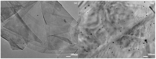 TEM images of Gr (a) and Au nanoparticles (AuNPs)/Gr (b).