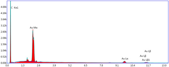 To further verify the successful synthesis of AuNPs/Gr nanocomposites, the EDX spectrum of AuNPs/Gr nanocomposites was measured to determine elemental compositions. In Figure 3, the peaks corresponding to Au and C elements are clearly observed, indicating the presence of AuNPs and Gr and the validity of the above conclusion.