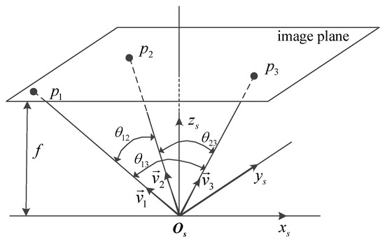 According to the pinhole model, the measurement is the coordinate of the i-th feature point in the image frame. Thus, the relationship between and can be obtained as: