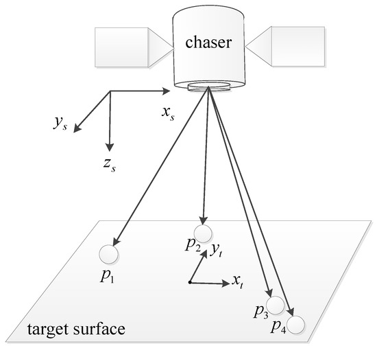 During the navigation, feature points are described in different coordinate systems. To obtain the observation model, the target body frame , the sensor frame and the image frame are defined. Without loss of generality, we assume the sensor frame as the reference frame [28].