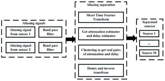 The entire process of separating the sources from the aliasing signals of two sensors is shown in Figure 3.
