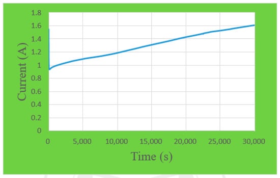 The purpose of activation is to attain the required performance of the proton exchange membrane water electrolyzer, so its characteristics must be known before the actual measurement of the proton exchange membrane water electrolyzer. Figure 6 shows the activation process completed after 8 h operation under a set point voltage of 2.5 V.