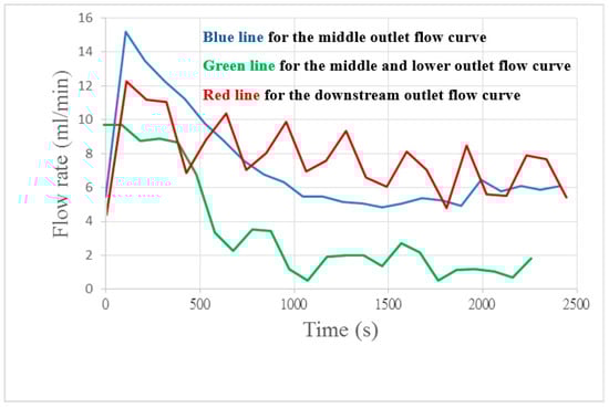 Figure 8 shows internal channels embedded in the downstream, midstream and upper midstream outlets. The initial flow of the runner is a little higher than the average flow which may be due to the fluid pressure drop; the fluid is stabilized with time.