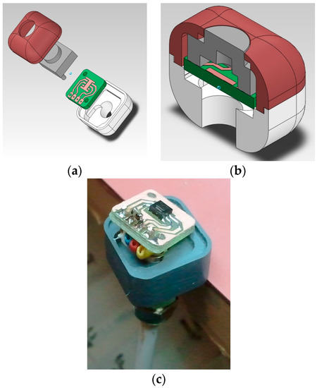 Embedded sensor (a,b) Detail of the construction (c) Real implementation.