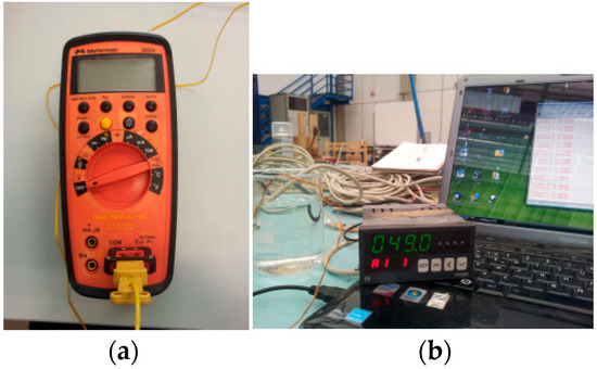 Figure 8a,b show the thermocouples, named TerEle and TerEst respectively, used as reference for the calibration. The sensor was found to work accurately when compared to the temperature readings of the thermocouples with PT100 probes, as shown in Figure 9. Note that the sensor features a similar evolution to that of the references (0.99) with an offset of only 0.72 ± 0.5 °C. The results showed a proper operation without communication problems.