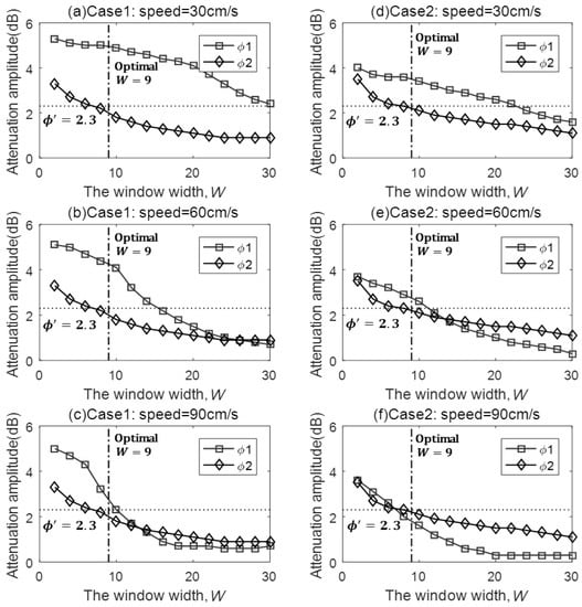 The RSS sampling rate is set as 10 Hz, and the two LOSLs in two cases are walked across along the dotted trajectory with different speeds (30 cm/s, 60 cm/s, and 90 cm/s) through random CPs. We adopted a sliding weighted mean (SWM) filter with a sliding window width to smooth the RSS samples [1]: