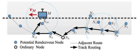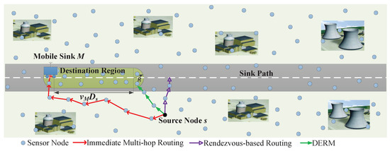 In the past several years, extensive research has been conducted on efficient data delivery in WSNs with above sink mobility patterns and could be classified into three categories from the perspective of the routing scheme [21]: single-hop routing, immediate multi-hop routing, and rendezvous-based routing. In the single-hop routing, mobile sinks visit each sensor node and gather data via one-hop communication, resulting in low energy cost but extremely high delivery latency [10,17,27,28,29,30]. With respect to the immediate multi-hop routing, all nodes immediately deliver packets to the mobile sink along dynamic routes with multiple hops, enabling real-time data collection at the cost of tremendous energy consumption [11,12,18,19,20,31]. Rendezvous-based routing strikes a balance between aforementioned two methods, wherein data packets originated from deployed nodes will first be transferred to specified rendezvous nodes and then uploaded to the sink when it arrives [13,16,21,22,23,24,25,32,33].