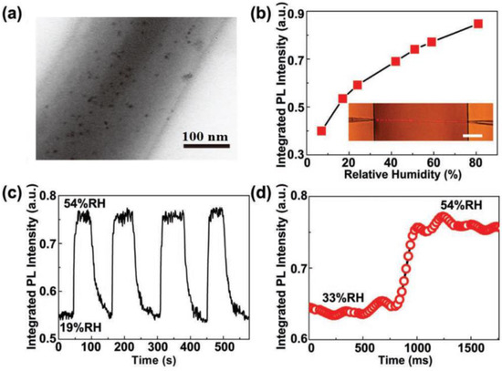- Meng, C.; Xiao, Y.; Wang, P.; Zhang, L.; Liu, Y.X.; Tong, L.M. Quantum-dot-doped polymer nanofibersfor optical sensing. Adv. Mater. 2011, 23, 3770–3774. [Google Scholar] [PubMed]