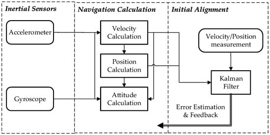 - Grewal, M.S.; Weill, L.R.; Andrews, A.P. Inertial navigation systems. In Global Positioning Systems, Inertial Navigation, and Integration; John Wiley & Sons, Inc.: New York, NY, USA, 2006; pp. 316–381. [Google Scholar]
