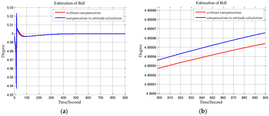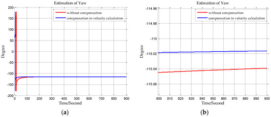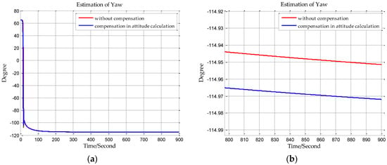 where denotes the quaternion change caused by , and is the update interval. Because DOV changes very slowly compared with the update interval of INS, can be assumed to remain constant during the update interval, the integral of which is the rotational vector can be obtained as follows: