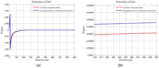 Finally, the true gravity vector in frame is obtained through Equations (41) and (45). Using this true gravity vector in velocity calculation to meet the two constraints on INS, then the adverse impact of horizontal gravity disturbance on INS will be eliminated.