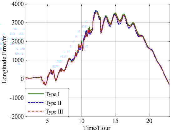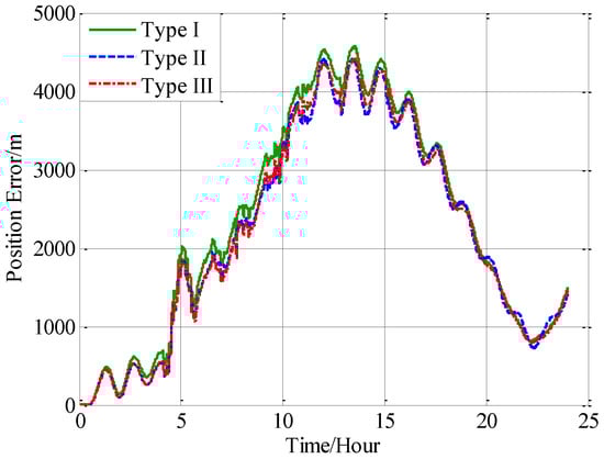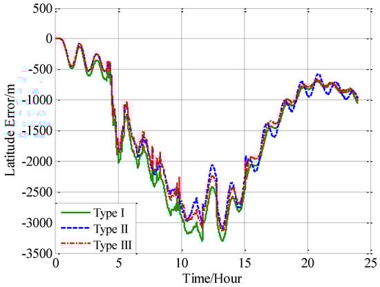 Lots of previous works have been carried on the analysis of the errors induced by horizontal gravity disturbances. One of the earliest papers to discuss horizontal gravity disturbance-induced errors was by Levine and Gelb [6], who considered the horizontal gravity disturbance taken along the 35th parallel in the United States, representing the horizontal gravity disturbance by a first-order Gauss-Markov process, and evaluated the effect on INS with a steady-state solution of the error covariance matrix differential equation. Based on the covariance analysis method proposed by Levine and Gelb, several more sophisticated horizontal gravity disturbance models have been used to replace the first-order Gauss-Markov model to analyze the effect on INSs [7,8]. These analyses only focus on the effect of horizontal gravity disturbances on navigation calculation and ignore the effect on the initial alignment. The initial alignment and navigation calculation are two successive processes, and the effect of horizontal gravity disturbance are systematically and comprehensively analyzed by simultaneously considering the two successive processes in this paper.