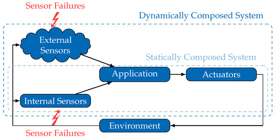 Reliable perception of environmental conditions based on (multimodal) sensors is a key feature for autonomously operating applications. However, the mapping process of relevant information from the real world on a digital representation is affected by external and internal disturbances. The different characteristics of possible failures (e.g., continuous or sporadic occurrence, value disturbance with constant, variable or correlated amplitude, absence of value) complicate the development of safety-oriented applications. In this case, engineers have to identify all disturbances that may possibly occur and evaluate their effect on the system’s properties. For this purpose, approaches such as Failure Mode and Effect Analysis (FMEA) [1], Fault Tree Analysis (FTA) [2], and Event Tree Analysis (ETA) [3] are commonly applied. Such methods leverage failure models [4] to represent a component’s failure characteristics and thereby support the selection process of appropriate fault tolerance mechanisms at a system’s design-time. At run-time, these tolerance mechanisms limit the effect of component failures and guarantee the system’s compliance with its required safety level. Key to this approach is the assumption that the system’s composition, i.e., its set of components, is determined at design-time and does not change at run-time.
