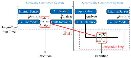 Figure 2 illustrates the inevitable shift of part of the safety analysis process to an integration step, which occurs at run-time whenever the system composition is about to change.