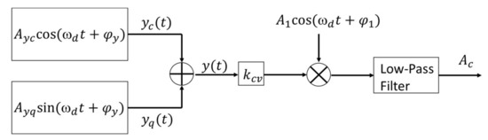 where is the amplitude of the Coriolis displacement, and this displacement is the result of the interaction between the Coriolis force and the feedback force, is the amplitude of the quadrature displacement, and is the phase of the sense-axis displacement. The orthogonal demodulation process in the closed-loop detection circuit is shown in Figure 11.