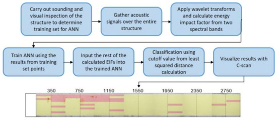 - Oh, T.; Popovics, J.S. Application of Impact Resonance C-Scan Stack Images to Evaluate Bridge Deck Conditions. J. Infrastruct. Syst. 2014, 21. [Google Scholar] [CrossRef]