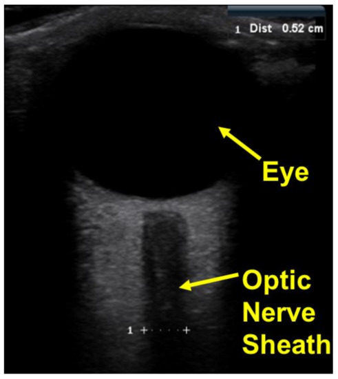 For further validation of the cephalad bio-fluid shifts, optic nerve sheath diameters were obtained and used to calculate estimated changes in ICP. Axial views of the optic nerve sheath were obtained using B-mode ultrasonography (Mindray M7, National Ultrasound, Duluth, GA, USA) and the DICOM file was used for analysis. As the pressure and volume in the cranial cavity increase, the increased CSF pressure in the subarachnoid space around the brain causes a swelling of the subarachnoid space around the optic nerve leading to an increase in the ONSD. Therefore, there is a direct relationship between ONSD and ICP. The ONSD measurements were used to quantify the induced change in ICP, using Equation (4) from literature [34].