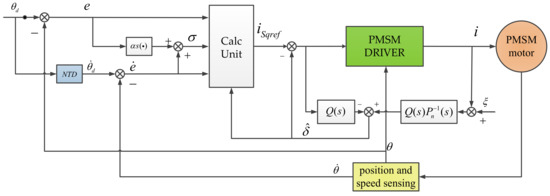 SMC is a popular nonlinear method for PMSM control [11,12,13,14,15]. As the sliding mode can be designed and independent of the object parameters and disturbances, SMC has the advantages of quick response, insensitivity to parameter changes and disturbances, no on-line identification, and simple physical realization. In particular, it is a very attractive aspect of the invariance to the disturbance [16]. Sliding mode variable structure control has also been successfully applied in many fields [17,18,19,20,21]. However, the invariance of the sliding mode variable structure control to the parameter perturbation and external disturbance of the system is changed by the high-frequency jitter of the control quantity.