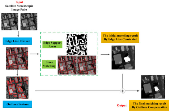 Therefore, for the whole dense matching process, an edge constraint and outline compensation (ECAOC) dense matching method is proposed to obtain high-precision disparity map of building objects in urban areas. In the following sections, the detail of the algorithm is provided.