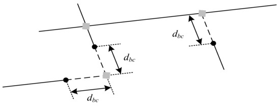- Condition 3: The extending line of one edge segment is intersected with another edge segment, and dbc < T3.