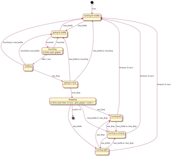 For the bottle collecting robot, this is implemented as shown in Table 7.